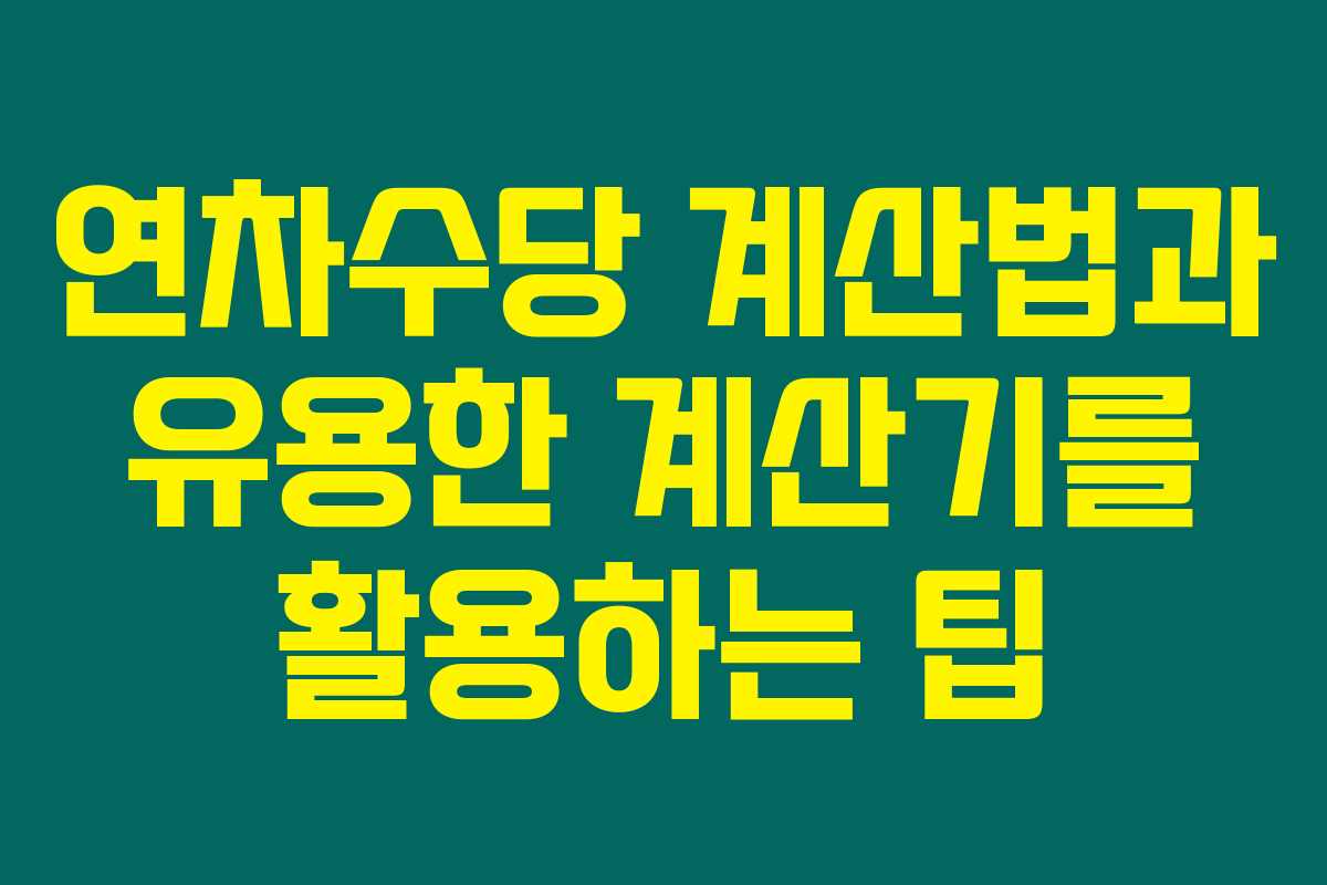 직장인에게 연차수당은 정말 중요한 부분이지요? 제가 직접 체크해본 바로는, 연차를 활용하지 못한 채 남겨두는 경우가 많아서 연차수당을 통해 누릴 수 있는 혜택이 많다는 것을 알게 되었어요. 이번 글에서는 연차수당 계산법과 함께 유용한 연차수당 계산기에 대해 알아보겠습니다. 아래를 읽어보시면, 연차수당에 대한 이해도가 한층 높아질 거예요.