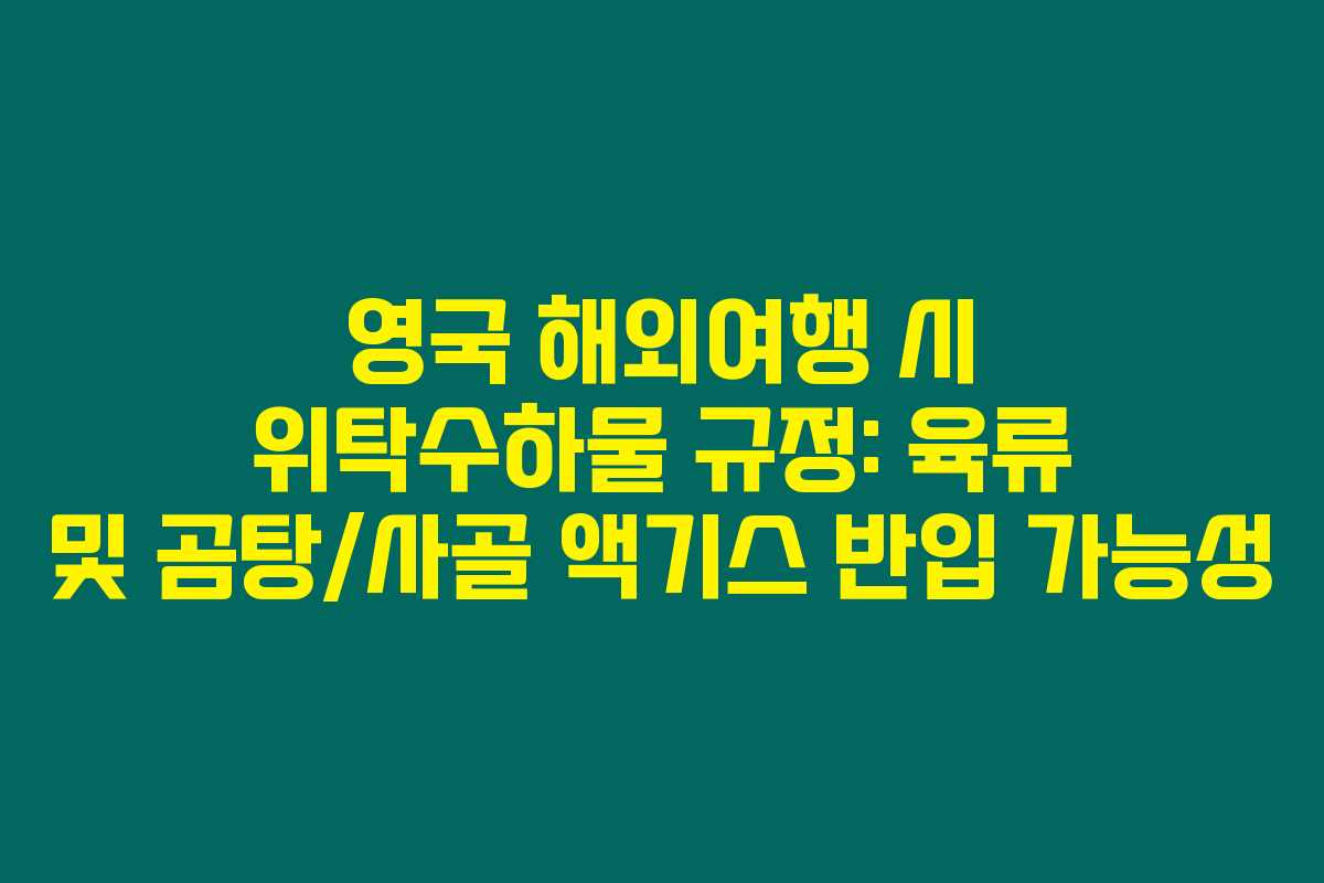 여행을 준비하면서, 영국의 위탁수하물 규정을 잘 알고 가신다면 더욱 안전하고 즐거운 여행이 될 거예요. 곰탕이나 사골 액기스 같은 제품은 반입이 어렵기 때문에 대체 품목을 챙겨 가도록 계획해보세요. 안전하고 즐거운 여행 되세요!