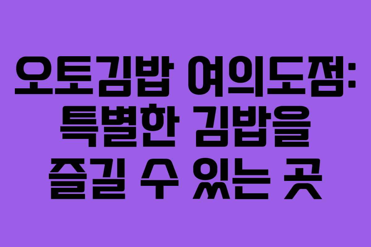 지금까지 오토김밥 여의도점에 대한 리뷰였습니다. 다음 방문 시에는 어떤 김밥을 선택할지 고민해보세요.