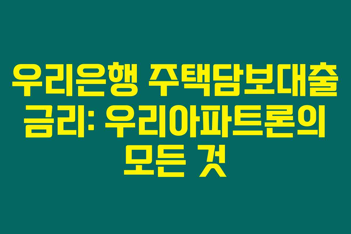 제가 직접 확인한 바로는, 우리은행의 주택담보대출 상품 중에서는 우리아파트론(일반자금)이 많은 고객에게 추천되고 있어요. 이 상품은 특히 아파트를 담보로 설정할 만큼 그 안정성과 유리한 조건으로 인해 인기가 높아지고 있답니다. 아래를 읽어보시면 우리아파트론의 금리와 한도, 다양한 조건에 대해 자세히 알아볼 수 있을 거예요.