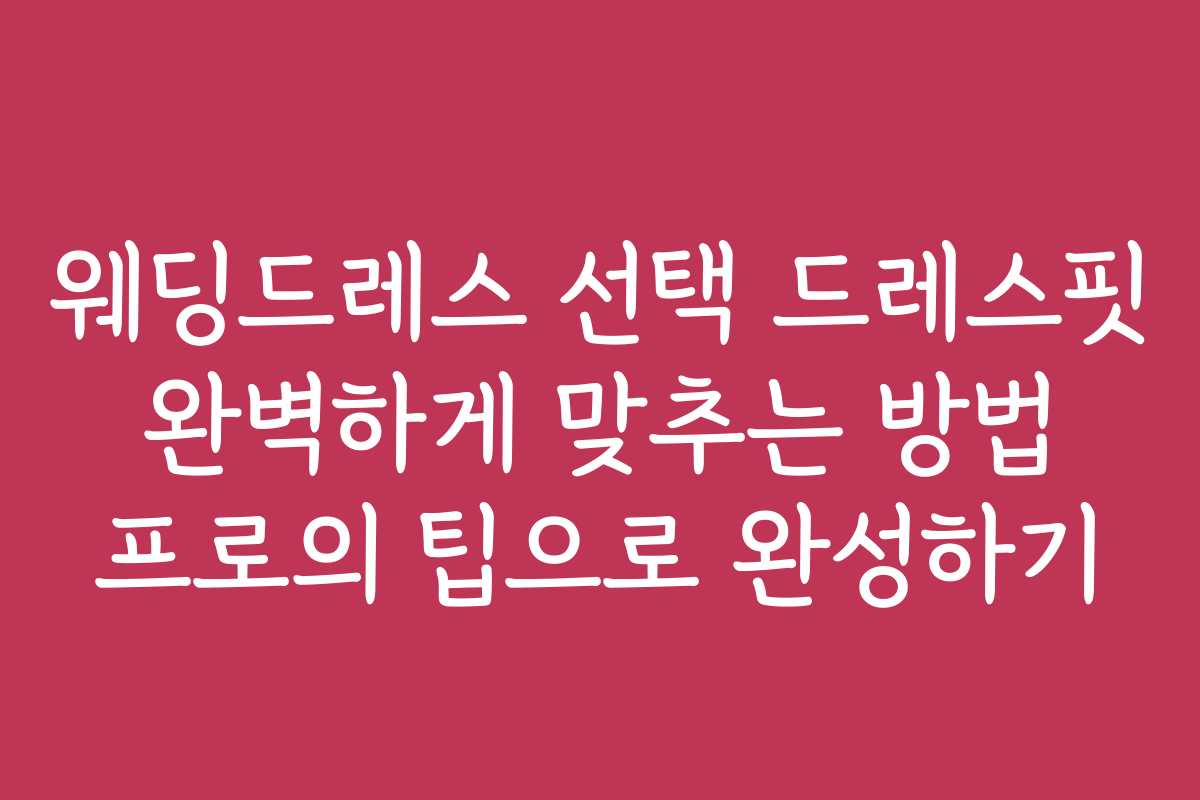웨딩드레스 선택 드레스핏 완벽하게 맞추는 방법 프로의 팁으로 완성하기