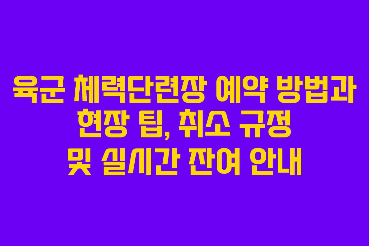 육군 체력단련장은 군 복무를 마친 후에도 체력을 단련하고 관리할 수 있는 공간으로, 많은 이들이 이용하고자 예약을 희망합니다. 이 글에서는 2026년 기준으로 육군 체력단련장 예약 방법, 현장에서 유용한 팁, 취소 규정, 잔여 자리 실시간 확인 방법에 대해 상세히 안내합니다.
