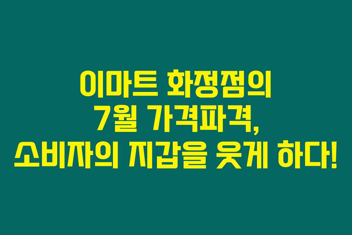 이번 7월 이마트 화정점에서는 가정에서 꼭 필요한 생필품부터 다양한 저렴한 상품들이 쏟아지니까요. 6월 27일부터 시작된 이번 가격파격은 정말 많은 소비자 여러분에게 큰 도움이 될 것 같아요. 그럼, 이마트 화정점의 가격파격이 어떻게 화제가 되고 있는지 살펴볼까요?