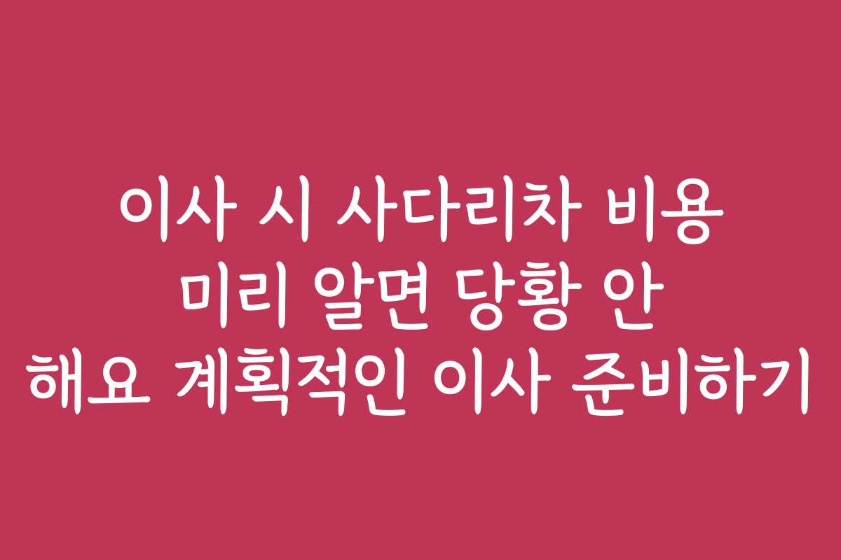 핵심 키워드: 이사, 사다리차 비용, 계획적인 이사 준비, 안전사고 예방, 이사 비용 절감, 업체 비교, 고객 후기, 서비스 품질, 사다리차 대여, 이사 준비 체크리스트, 신뢰도 높은 업체