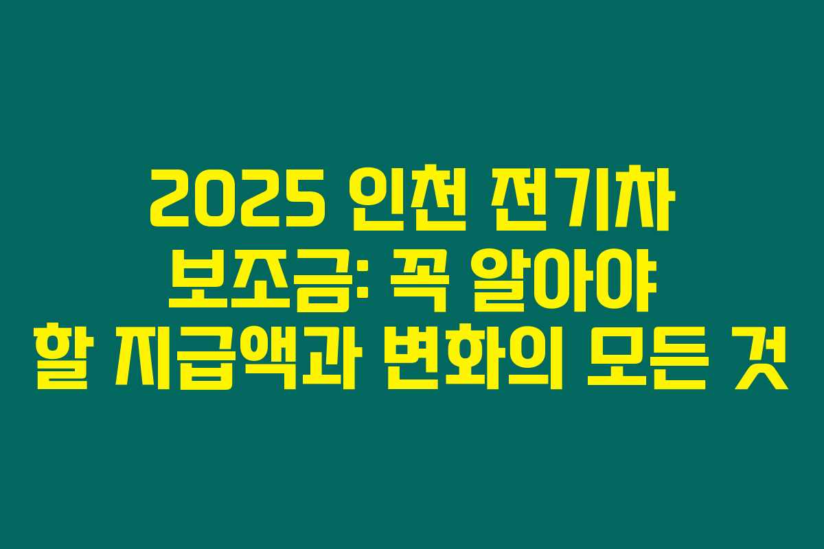 2025년에는 인천 전기차 보조금 정책에서 몇 가지 중요한 변경 사항이 도입되었습니다. 이 변화는 전기차 구매자에게 큰 영향을 미칠 수 있기 때문에 꼭 확인해야 해요.