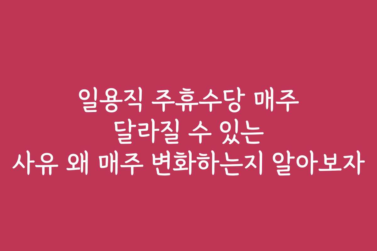 일용직 근로자에게 주휴수당은 매우 중요한 요소입니다. 하지만 이 수당이 매주 어떻게 달라질 수 있는지에 대해 궁금해하는 분들이 많습니다. 이번 글에서는 일용직 주휴수당이 매주 변화하는 이유를 자세히 살펴보고, 이를 관리하는 팁을 제공하겠습니다.