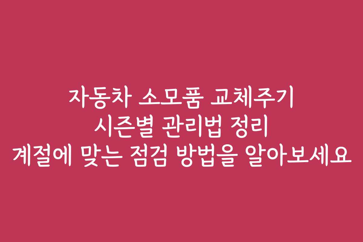 자동차 소모품이 언제 교체되어야 하는지 아는 것은 매우 중요합니다. 특히 계절에 따라 관리법이 달라지는 자동차 소모품 교체 주기를 정리해 드립니다. 이 글을 통해 시즌별 관리법을 알고, 안전한 운전 환경을 만들어 보세요.