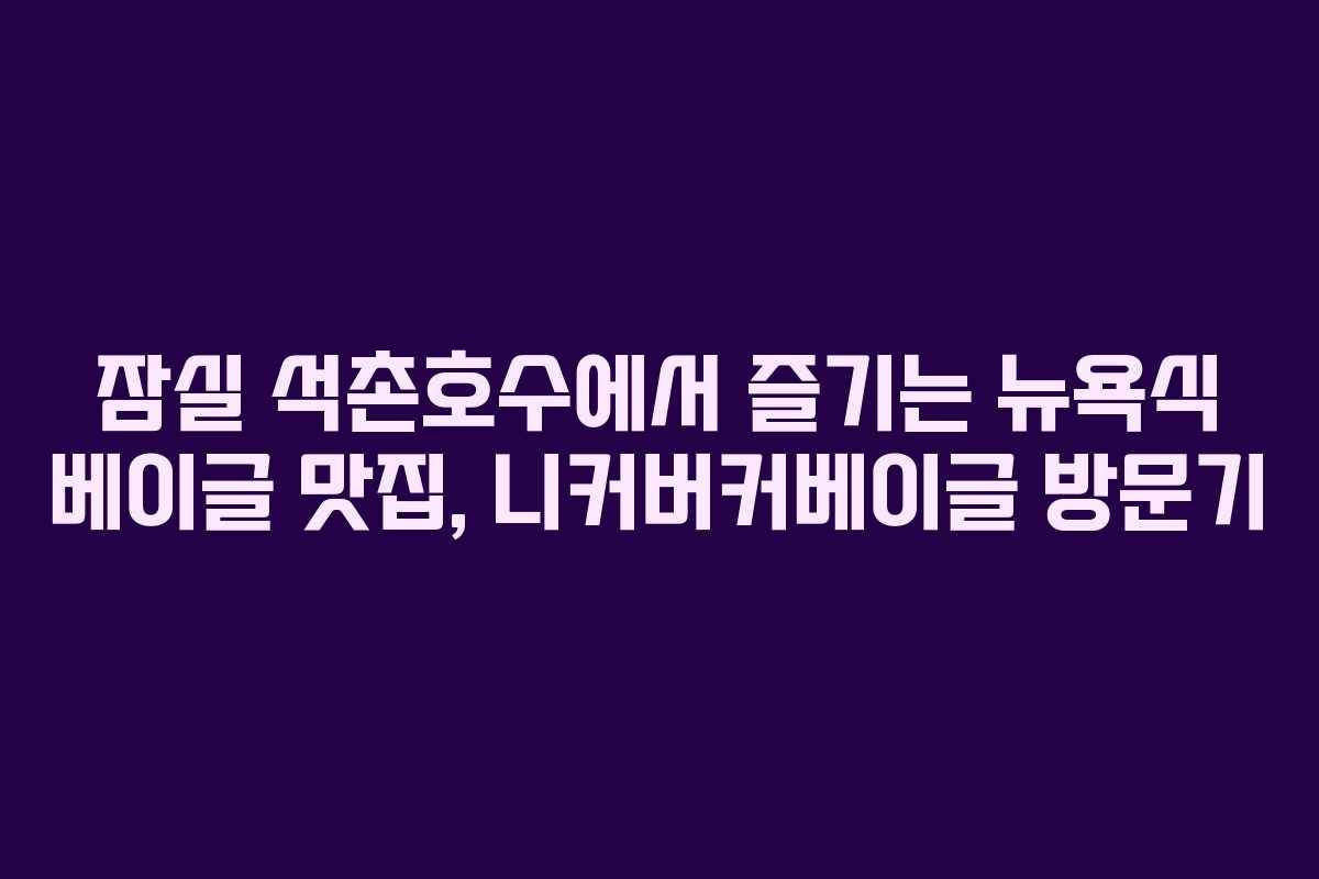 주말을 맞아 잠실 석촌호수 근처에서 특별한 브런치를 즐기고 싶다면 니커버커베이글을 추천한다. 이곳은 뉴욕식 베이글의 매력을 제대로 느낄 수 있는 곳으로, 쫄깃한 식감과 다채로운 토핑으로 많은 사람들의 사랑을 받고 있다. 특히 석촌호수의 아름다운 풍경과 함께하는 브런치는 그 자체로 완벽한 조합이다.