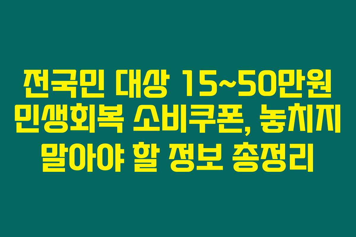 최근 정부가 발표한 민생회복 소비쿠폰에 대한 내용은 많은 국민들의 관심을 끌고 있습니다. 이 소비쿠폰은 경제 활성화와 가계 부담 완화를 목표로 하며, 15만원에서 최대 50만원까지 받을 수 있는 기회랍니다. 아래를 읽어보시면, 소비쿠폰의 지원 대상, 신청 방법, 사용처, 혜택 등 다양한 정보를 자세히 알 수 있어요.