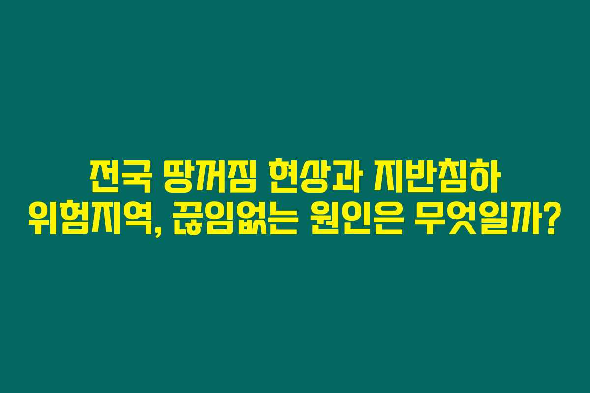 제가 직접 체크해본 바로는, 최근 10년 동안 한국에서 전국 땅꺼짐 현상이 2,000건을 넘어서며 큰 화제가 되고 있습니다. 저도 뉴스에서 땅이 꺼지는 모습을 여러 번 접했는데요, 이러한 현상이 수도권뿐 아니라 지방 대도시에서도 지속적으로 발생하고 있다는 사실이 정말 놀랍습니다. 아래를 읽어보시면 지반침하의 원인과 위험 지역에 대한 유용한 정보를 확인하실 수 있습니다.