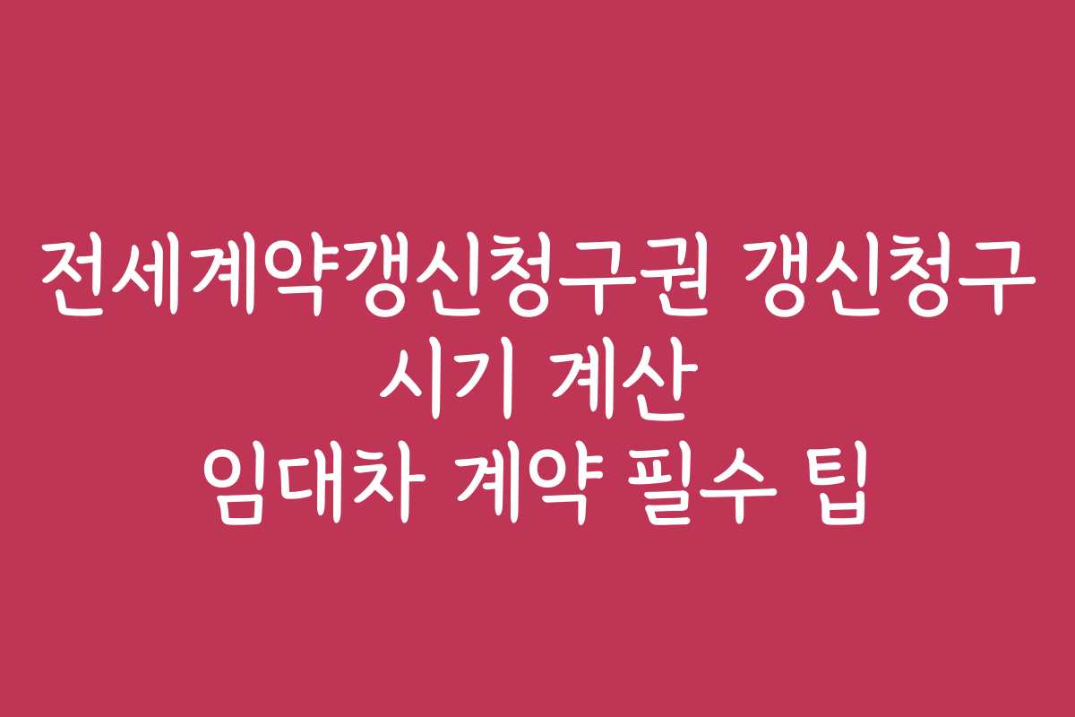 전세계약갱신청구권 갱신청구 시기 계산 임대차 계약 필수 팁