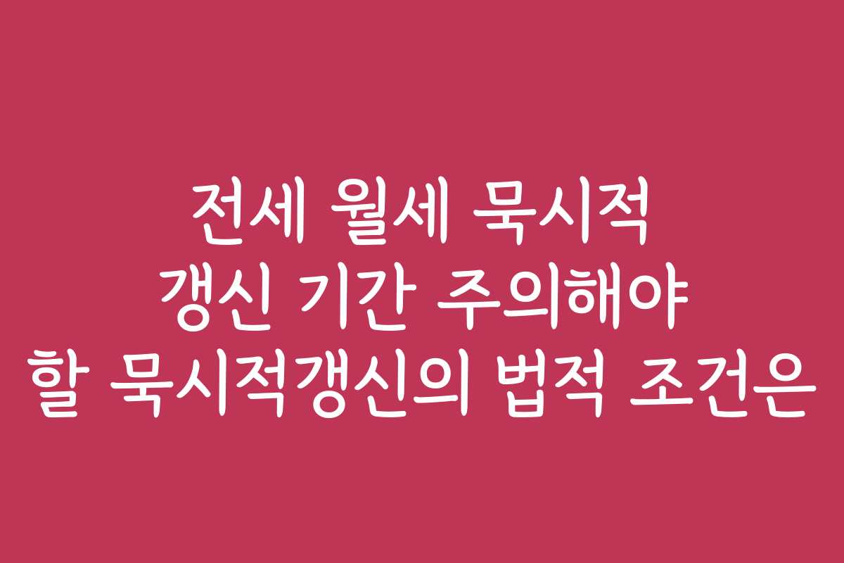 전세와 월세 묵시적 갱신, 법적 조건과 주의해야 할 점은 무엇일까요?