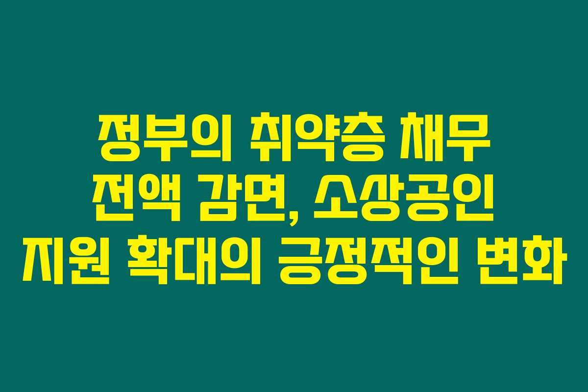 정부의 ‘취약층 채무 전액 감면‘과 소상공인에 대한 추가 지원은 경제 회복을 위한 중요한 첫걸음이 될 것입니다. 이렇게 실질적인 도움이 필요한 분들에게 정책이 잘 전달되고 시행되어, 더 나은 경제 환경이 조성되길 기대해 봅니다. 많은 사람들이 이 기회를 통해 재기할 수 있기를 바랍니다.