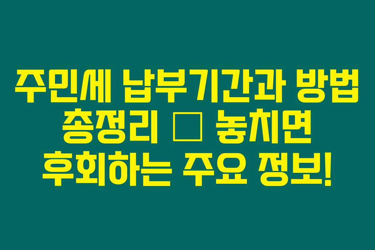 주민세 납부기간과 방법 그리고 대상에 대해 이렇게 정리해봤어요. 놓치지 마시고 기한 안에 꼭 납부하시길 바라요!