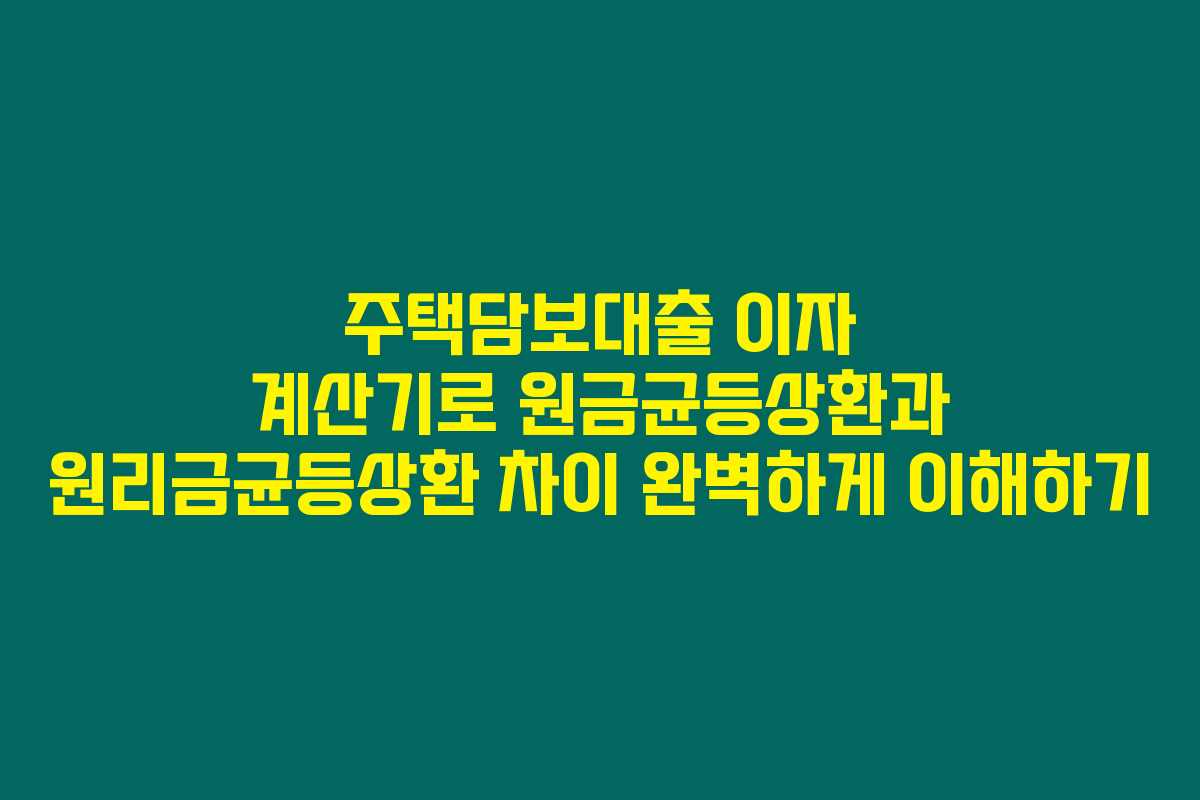 주택담보대출 이자 계산기와 원금균등상환, 원리금균등상환의 차이를 이해하고 활용하면, 더 나은 선택을 할 수 있는 기회를 얻게 될 거예요. 특히 최근 이자 상승으로 인해 주의가 필요한 상황이니, 주목해 보세요!