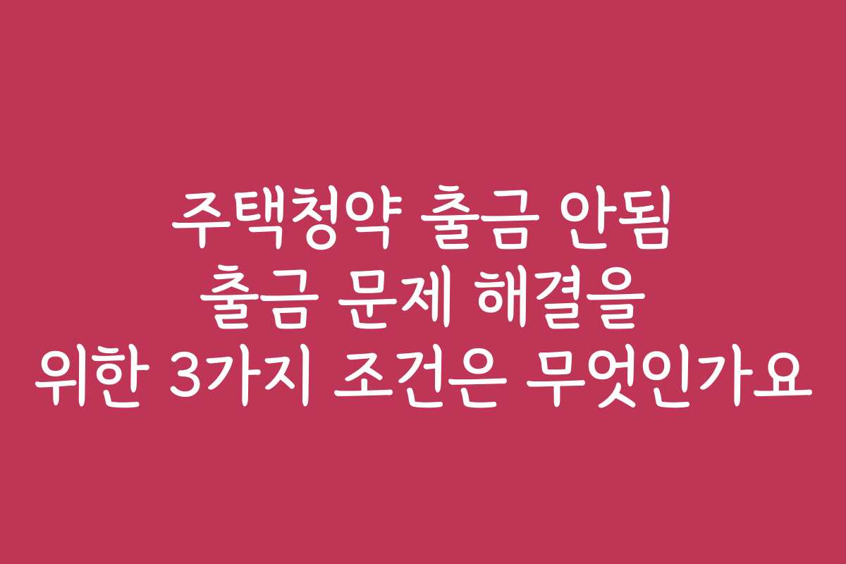주택청약 출금 문제 해결을 위한 3가지 조건은 무엇일까요?
