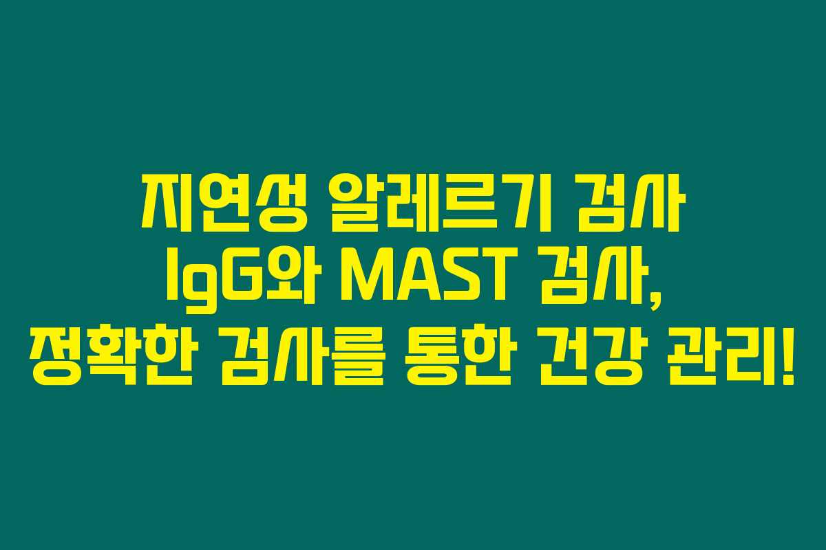 아토피나 비염 등으로 고통받는 분들이 많아지고 있는데요. 특히 지연성 알레르기 검사인 IgG와 MAST 검사를 통해 의심되는 알레르기 원인을 파악하는 것이 중요합니다. 아래를 읽어보시면 이러한 검사를 통해 어떤 정보를 얻을 수 있는지 자세히 알게 될 거예요.