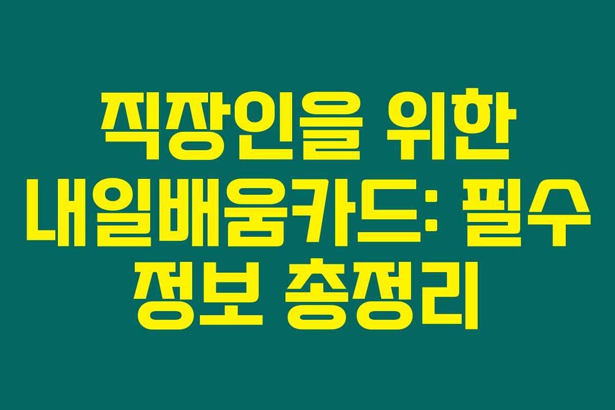 내일배움카드는 직장인과 구직자 모두에게 유용한 자원입니다. 이를 통해 경력과 기술을 확장할 수 있는 기회를 최대한 활용하는 것이 좋을 것이라고 생각해요. 이 제도가 여러분의 경력 개발에 도움이 되길 바라요.