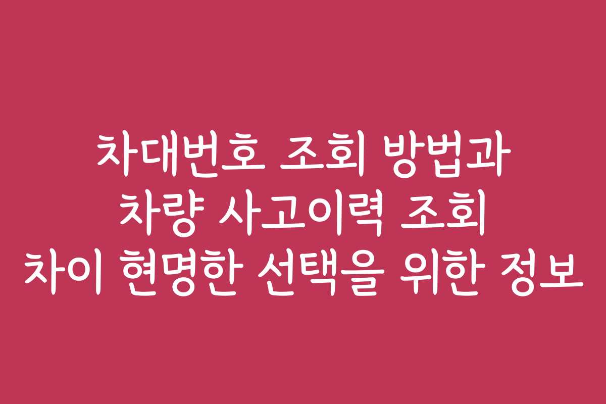 차량 구매를 고민하고 계신가요? 차대번호 조회와 차량 사고이력 조회 방법을 알아야 현명한 선택을 할 수 있습니다. 본 포스팅에서는 두 가지 조회 방법의 차이점을 살펴보고, 어떻게 활용할 수 있는지 안내하겠습니다.