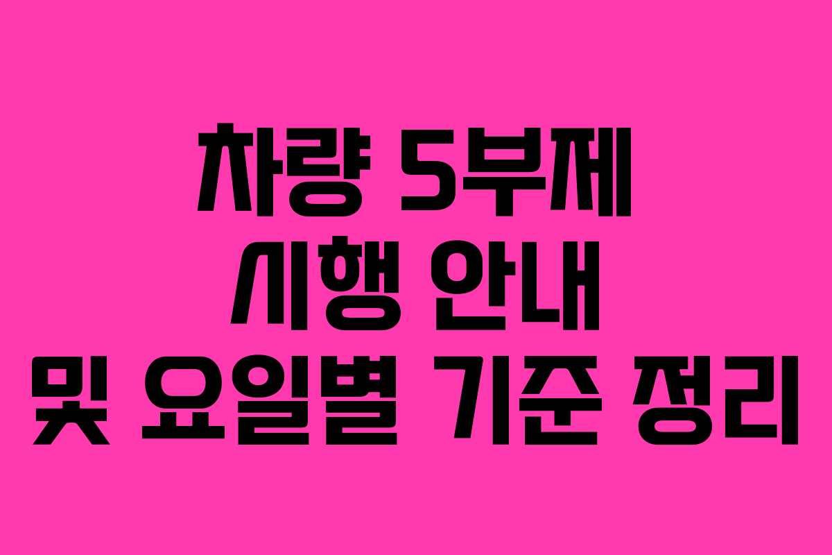 차량 5부제는 차량 번호의 끝자리 숫자에 따라 특정 요일에 운행을 제한하는 제도입니다. 이 제도의 주요 목적은 에너지 절약, 교통량 감소, 대기오염 저감입니다. 쉽게 말하면, 차량 번호의 끝자리로 요일에 따른 운행 제한을 두는 정책이라고 할 수 있습니다. 이를 통해 교통 혼잡을 줄이고, 대기 질을 개선하는 데 기여할 것으로 기대하고 있습니다.