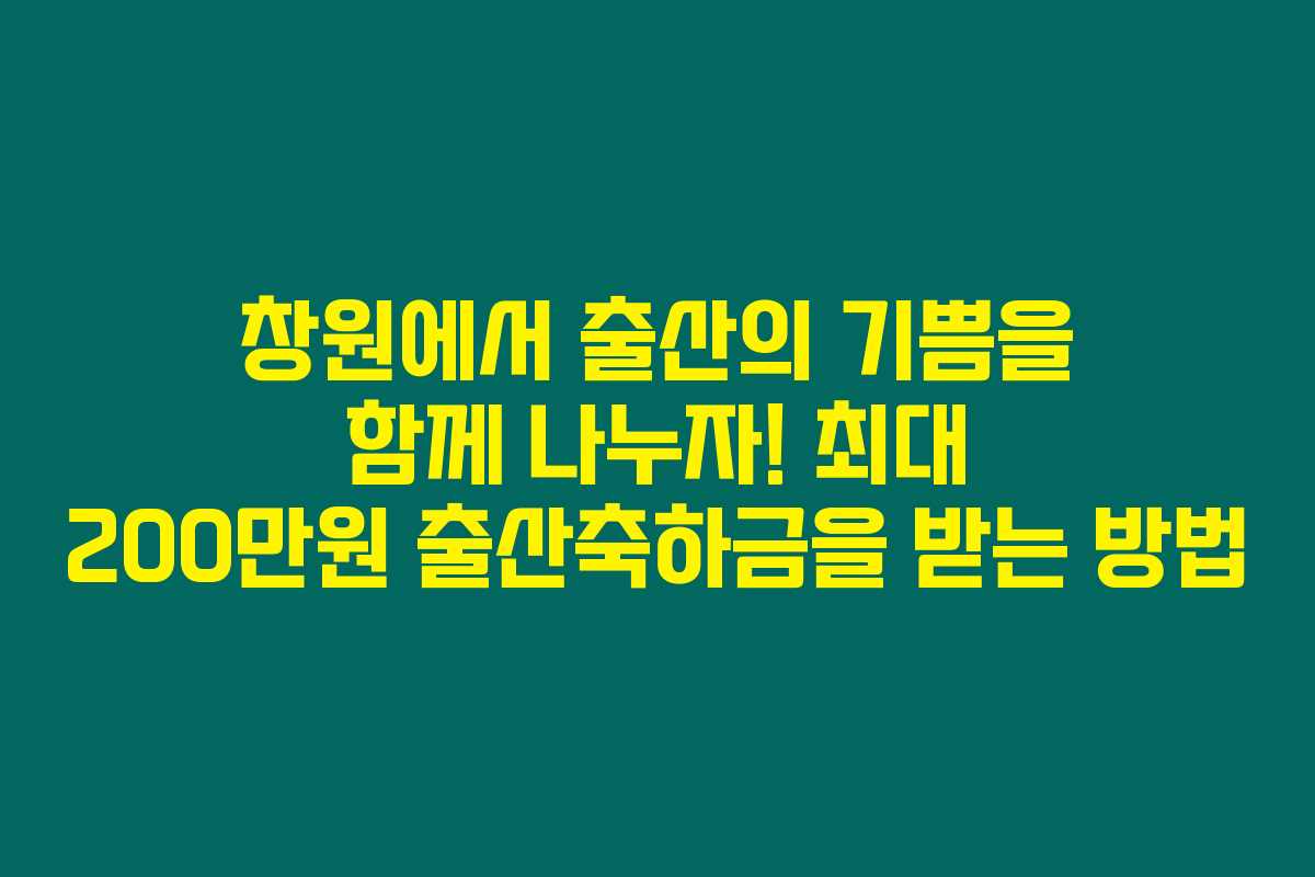제가 직접 확인해본 결과, 경남 창원시는 저출산 문제를 해결하기 위해 출산축하금으로 최대 200만원을 지급하고 있습니다. 많은 부모님들에게 큰 도움을 주는 이 제도에 대해 상세히 알아보고, 활용할 수 있는 방법을 소개해드릴게요.