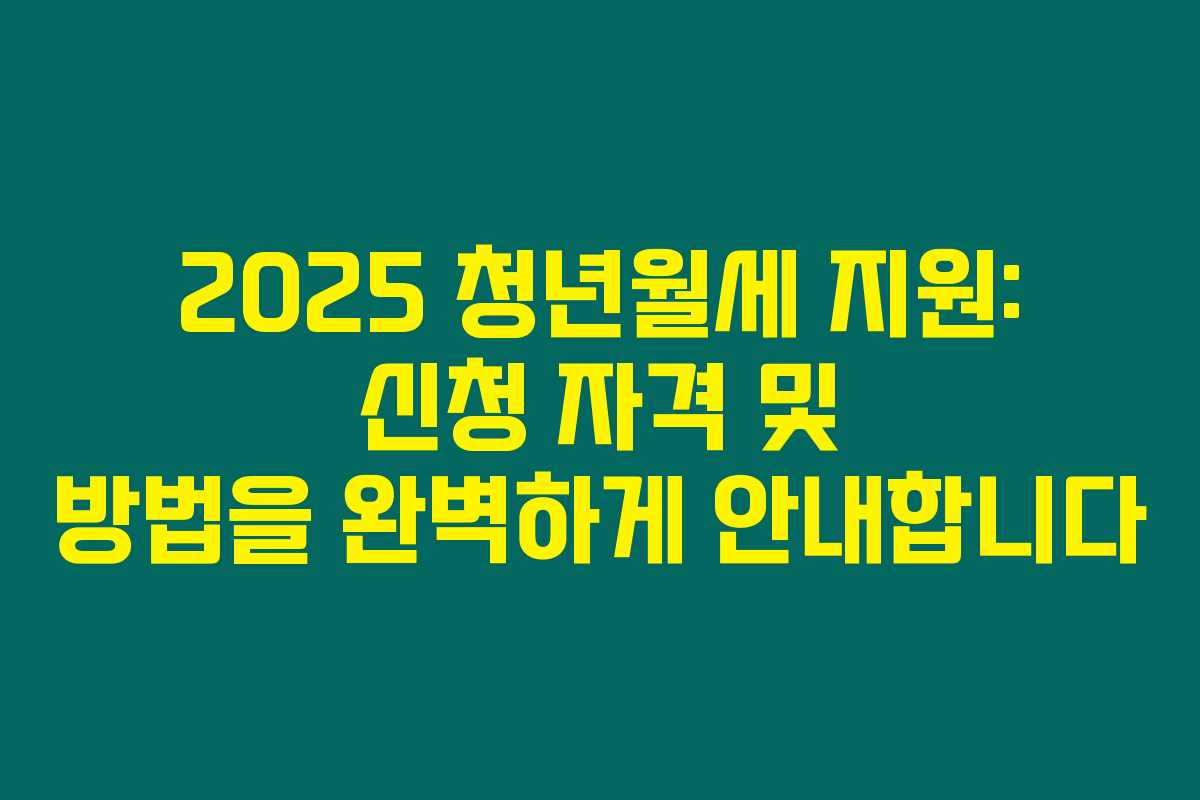 2025년 기준 청년월세 지원의 신청 자격은 다음 기준을 충족해야 해요.