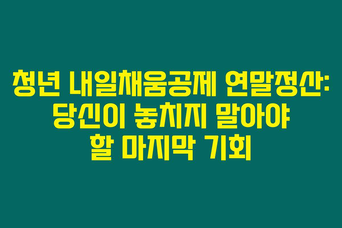 제가 직접 체크해본 바로는, 이번 청년 내일채움공제 마지막 연말정산은 절대로 놓쳐서는 안 되는 중요한 기회입니다. 이해를 바탕으로 적시에 필수 서류를 제출하고, 정확한 신고를 통해 이 기회를 잘 활용하시길 바랍니다.
