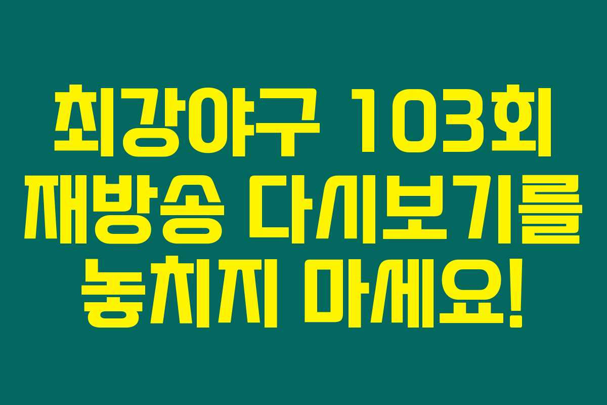 최강야구 103회 재방송은 어디서 볼 수 있나요?