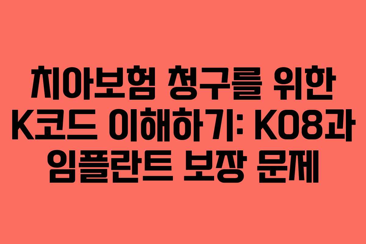 치아보험은 치과 치료비를 덜어주는 유용한 수단으로 자리 잡았습니다. 그러나 실제 청구 과정에서 복잡한 진단 코드로 인해 많은 소비자들이 혼란을 겪고 있습니다. 특히 K08 코드가 포함되면 임플란트 보장이 어려울 것이라는 우려가 커지고 있습니다. 이번 글에서는 K코드의 의미와 보장 범위를 명확히 알아보고, 소비자들이 알아야 할 사항들을 정리해 보겠습니다.