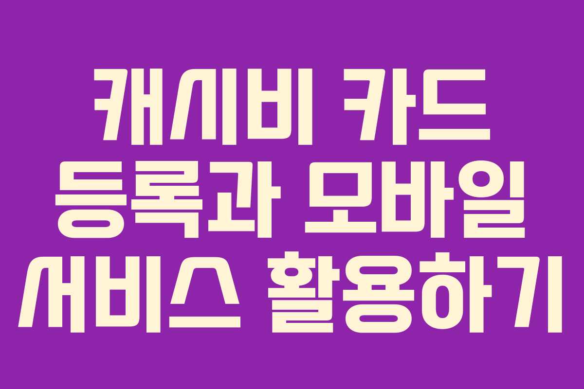캐시비 사용에 대한 실전 가이드