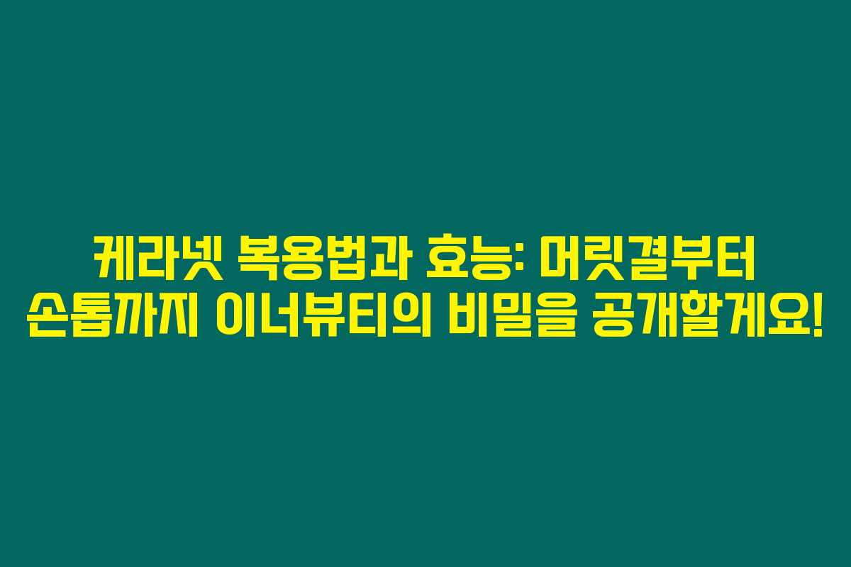 - 먹는 케라넷의 놀라운 효능: 어디에 좋을까?