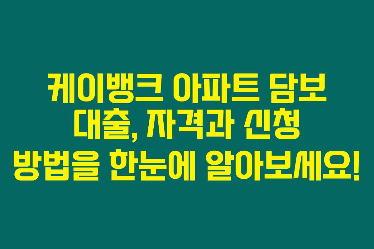 1. 케이뱅크 아파트 담보 대출 자격은 어떻게 되나요?