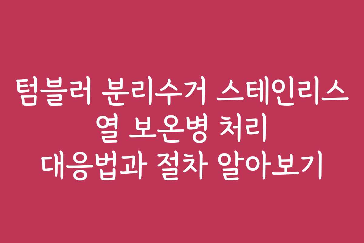 텀블러와 스테인리스 보온병의 분리수거가 어렵게 느껴지시나요? 이런 고민을 해결해드리기 위해 텀블러 분리수거 절차와 올바른 처리 방법을 알려드립니다. 스테인리스 열 보온병도 환경보호에 앞장설 수 있습니다!