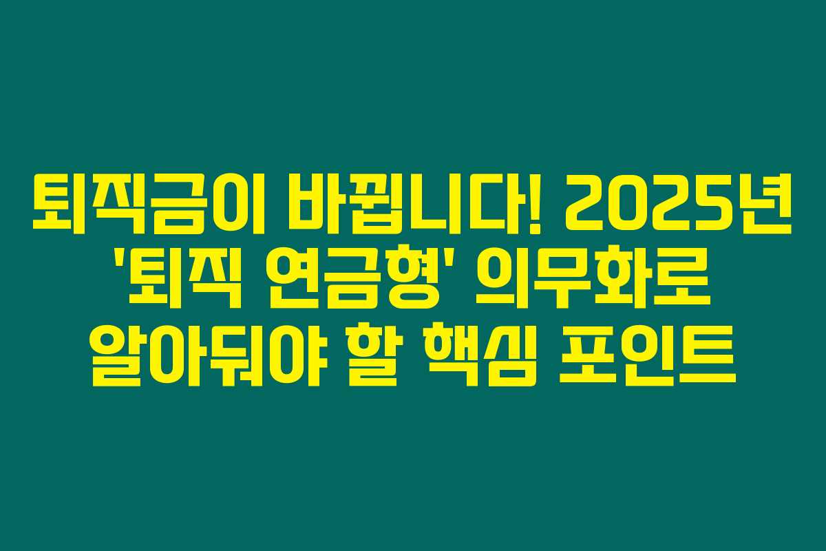 - 퇴직금 이원화 폐지: 일시금 지급 방식이 없어지니, 현금으로 받기 어려워진 것이죠.