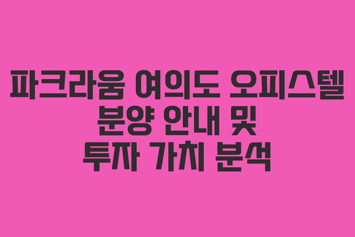 파크라움 여의도의 투자 전략 및 실전 가이드