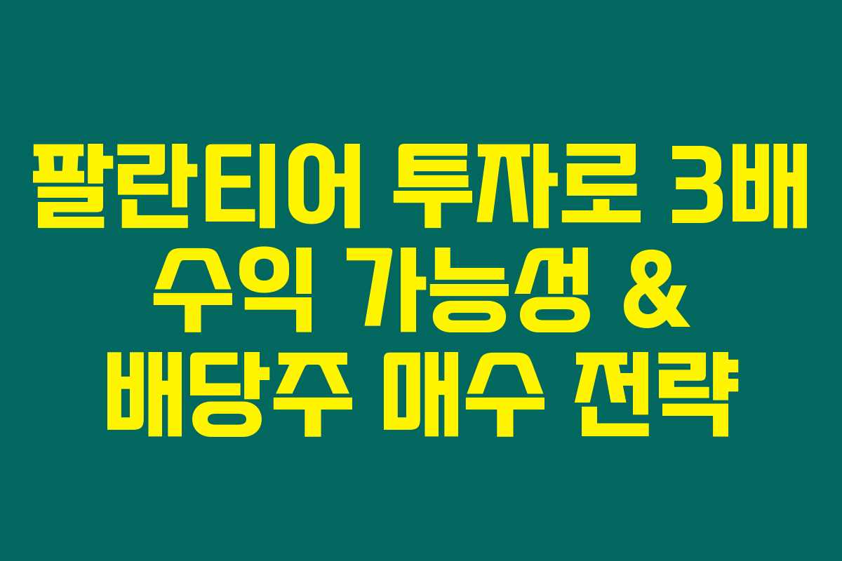제가 직접 리서치한 바로는, 팔란티어 주식 투자로 단기간에 상당한 수익을 올릴 수 있는 기회를 발견했습니다. 최근 팔란티어 주식이 3배 가까이 상승한 모습을 보였고, 이제는 여러분이 배당주를 전략적으로 매수하여 안정적인 월현금 흐름 을 확보할 수 있는 방법에 대해 알아보려고 해요. 아래를 읽어보시면, 팔란티어 투자와 함께 배당주 매수 전략을 계획하는 데 도움이 될 것입니다.