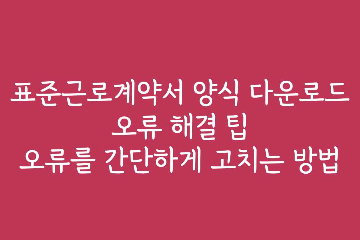 표준근로계약서 양식 다운로드 오류 해결 팁 오류를 간단하게 고치는 방법