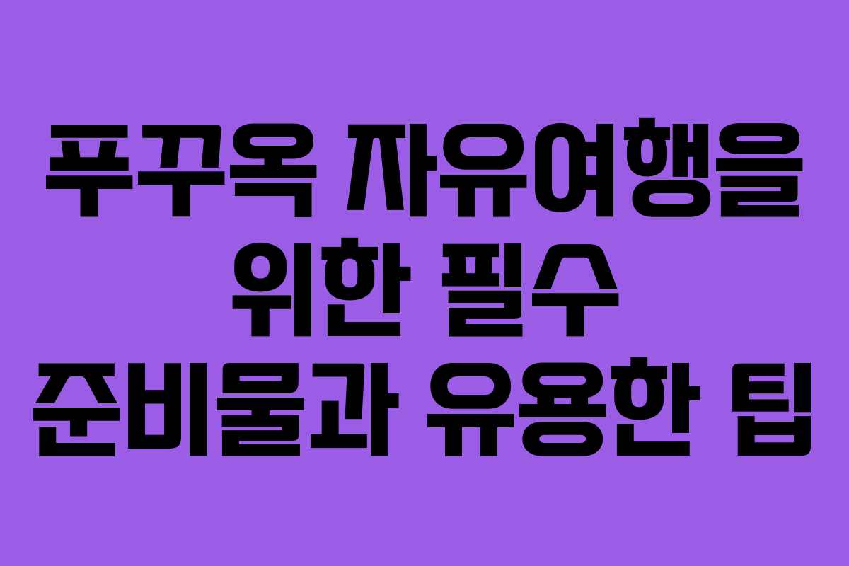 푸꾸옥은 베트남의 아름다운 섬으로 많은 한국인에게 인기 있는 여행지로 떠오르고 있습니다. 이곳은 뛰어난 자연경관과 다양한 액티비티로 자유여행자들에게 매력적인 곳입니다. 이번 글에서는 푸꾸옥을 여행하기 위해 필요한 준비물과 현지에서의 유용한 팁을 소개합니다. 2026년 기준으로 업데이트된 내용도 포함되어 있으니, 참고해 보세요.
