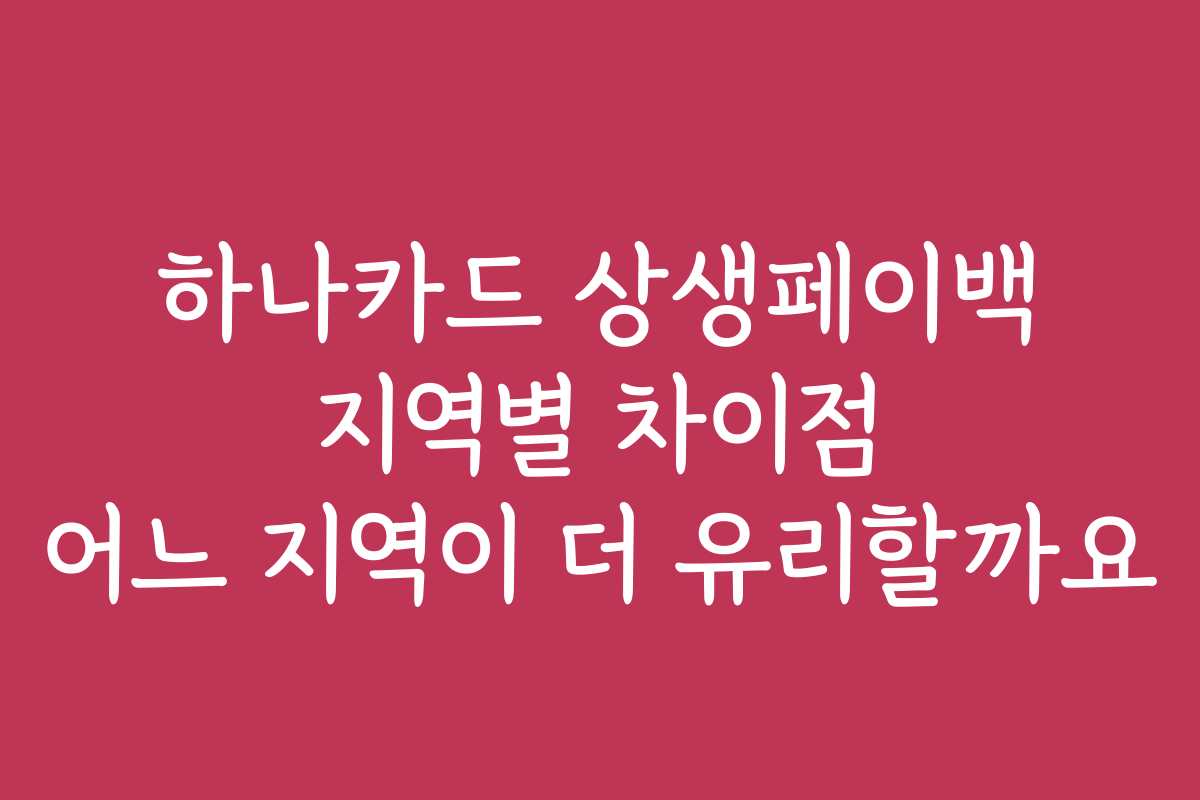 하나카드 상생페이백 지역별 차이점 어느 지역이 더 유리할까요