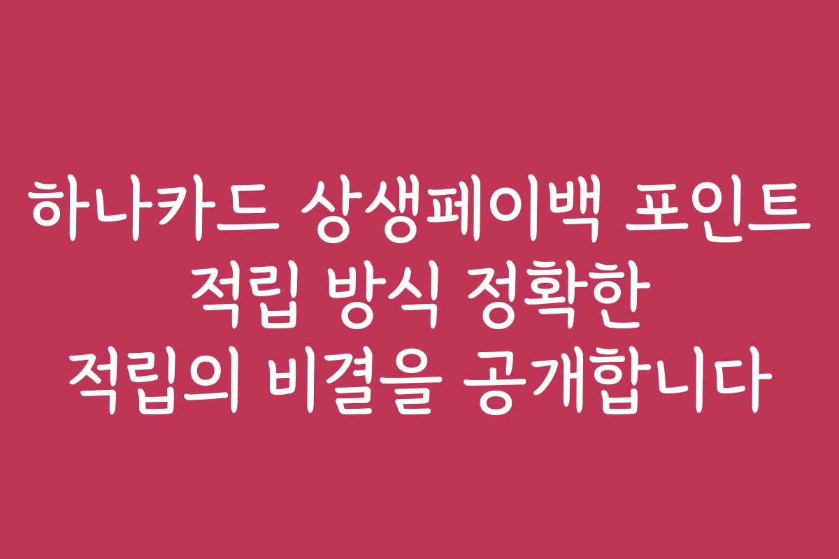 하나카드 상생페이백 포인트를 정확하고 효율적으로 적립하고 사용하기 위해서는 무엇보다 활용 방식을 잘 이해하는 것이 중요합니다. 여러 가지 방법을 통해 여러분도 더욱 많은 혜택을 누리시길 바랍니다.