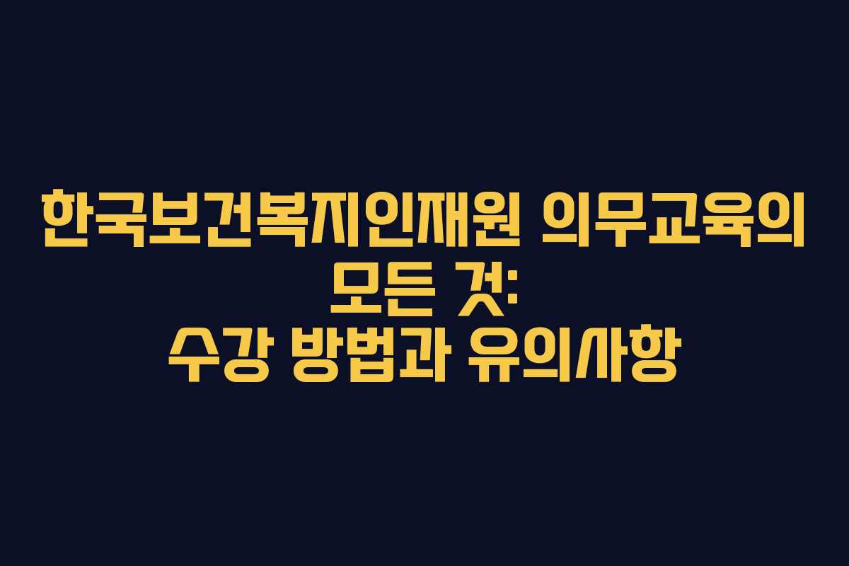 한국보건복지인재원 의무교육의 모든 것: 수강 방법과 유의사항