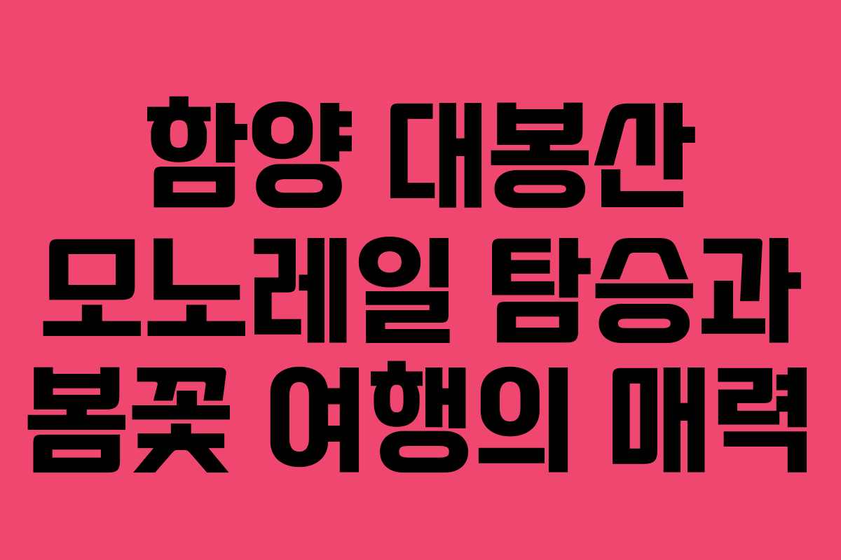 함양 대봉산 모노레일 탐승은 자연과의 조화 속에서 특별한 경험을 제공합니다. 2026년 상반기에는 봄꽃이 만개하는 시기에 맞춰 더욱 많은 이들이 이곳을 찾을 것입니다. 대봉산은 아름다운 경치와 함께 다양한 레포츠를 즐길 수 있는 최적의 장소로 알려져 있습니다. 최근에는 많은 관광객들이 이곳을 방문하여 힐링과 레저를 동시에 즐기고 있습니다. 이 글에서는 대봉산 모노레일의 특징과 함께 여행 일정을 소개합니다.