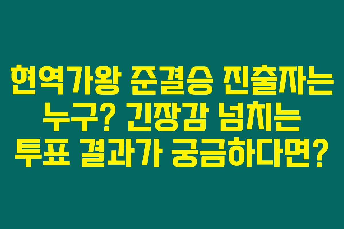 현역가왕에서의 준결승 진출자 9명에 대한 이야기를 나누고 있어요. 이번 준결승에서 어떤 경쟁이 펼쳐질지 무척 흥미롭네요! 혹시 탈락자에 대한 정보도 궁금하신가요? 아래를 읽어보시면 이 모든 궁금증을 해결해 드릴게요.