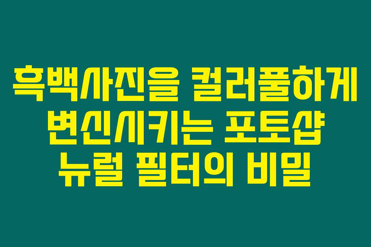 흑백사진을 더 이상 옛날의 기억으로만 간직하고 싶지 않다면 포토샵의 뉴럴 필터를 활용해보세요. 귀여운 색이 빠진 오래된 사진이 컬러풀하게 변신하는 놀라운 과정을 경험할 수 있습니다. 이 글에서는 흑백사진이 왜 여전히 매력적인지를 설명하고 어떻게 포토샵 뉴럴 필터를 활용할 수 있는지에 대한 정보를 제공하려고 합니다. 아래를 읽어보시면, 흑백사진 복원에 대한 최신 기술과 실용적인 팁을 확인할 수 있습니다.