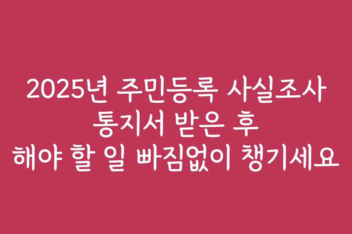 2025년 주민등록 사실조사 통지서 받은 후 해야 할 일 빠짐없이 챙기세요