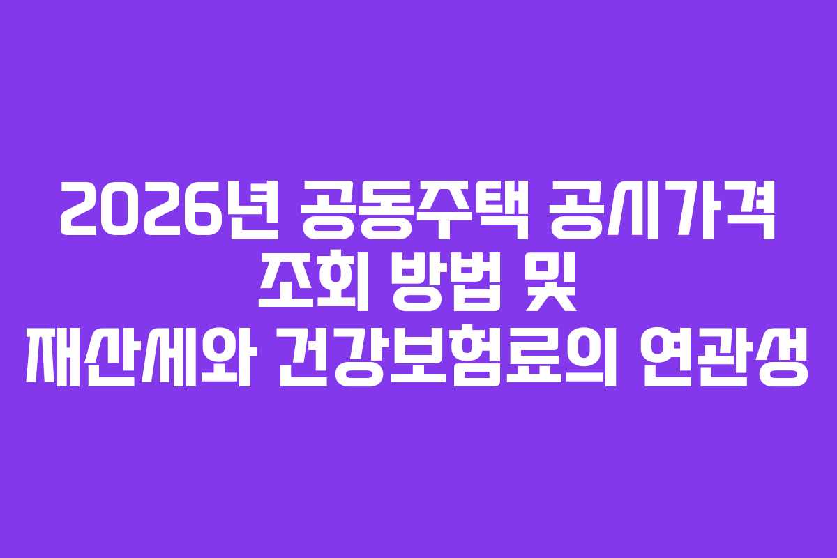 2026년 공동주택 공시가격 조회 방법 및 재산세와 건강보험료의 연관성