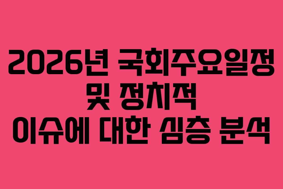2026년의 정치적 흐름을 이해하기 위해서는 국회에서 진행되는 주요 일정을 놓쳐서는 안 됩니다. 특히 각 정당의 회의와 본회의 일정은 향후 정책 결정에 큰 영향을 미치기 때문에 주의 깊게 살펴볼 필요가 있습니다. 오늘은 2026년 3월의 주요일정을 중심으로 정치적 이슈와 향후 전망을 정리하겠습니다.