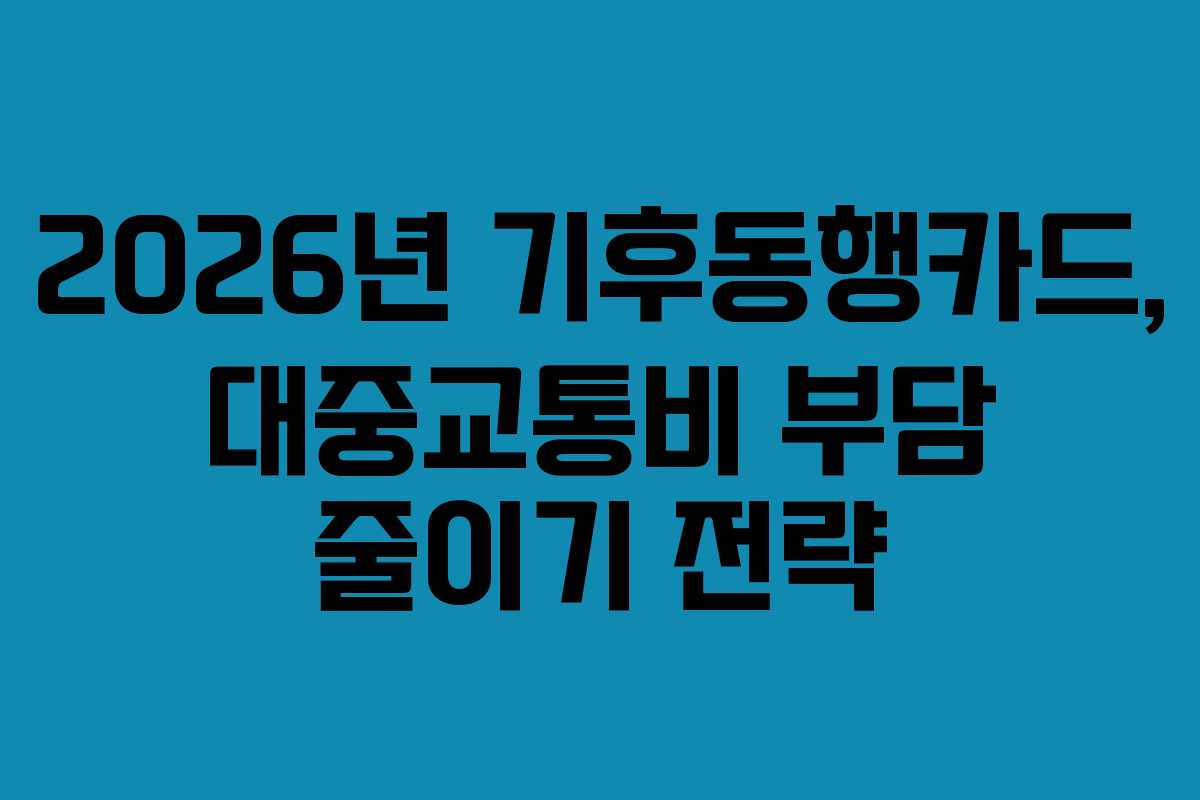 2026년 기후동행카드, 대중교통비 부담 줄이기 전략