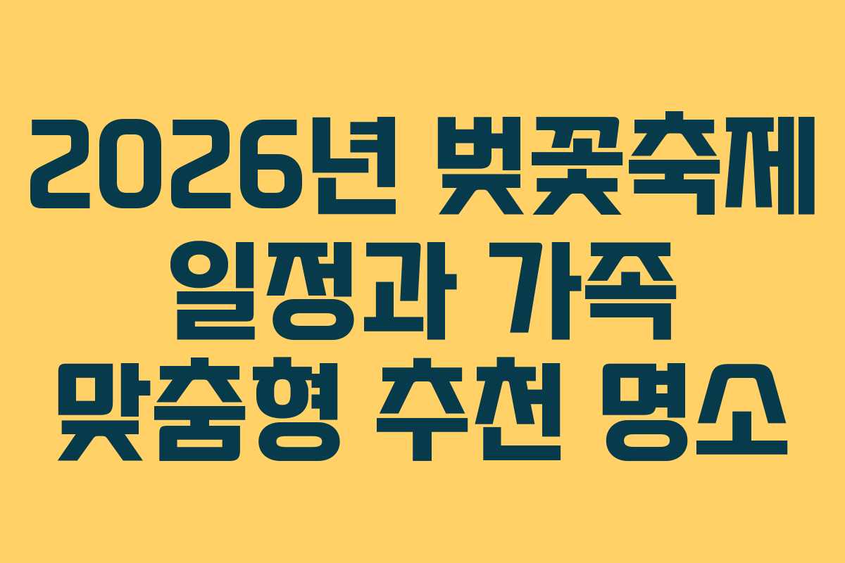 2026년 벚꽃축제는 지역마다 상이하지만, 대부분 3월 중순부터 4월 초까지 열립니다. 서울의 여의도 봄꽃축제는 4월 2일부터 6일 사이에 진행됩니다.
