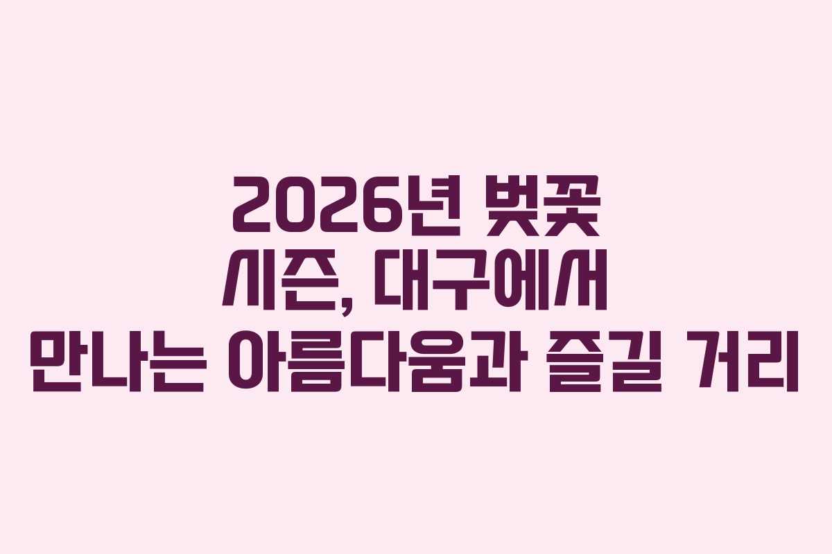 2026년 벚꽃 시즌은 대구의 아름다움을 만끽할 수 있는 절호의 기회입니다. 이 시기에 대구를 방문하면 다양한 장소에서 벚꽃의 매력을 느낄 수 있으며, 각 지역마다 독특한 경험을 제공합니다. 각 장소의 특징과 즐길 거리, 그리고 유의사항을 정리하여 여러분의 벚꽃 나들이를 더욱 풍성하게 만드는 방법을 알려드립니다.
